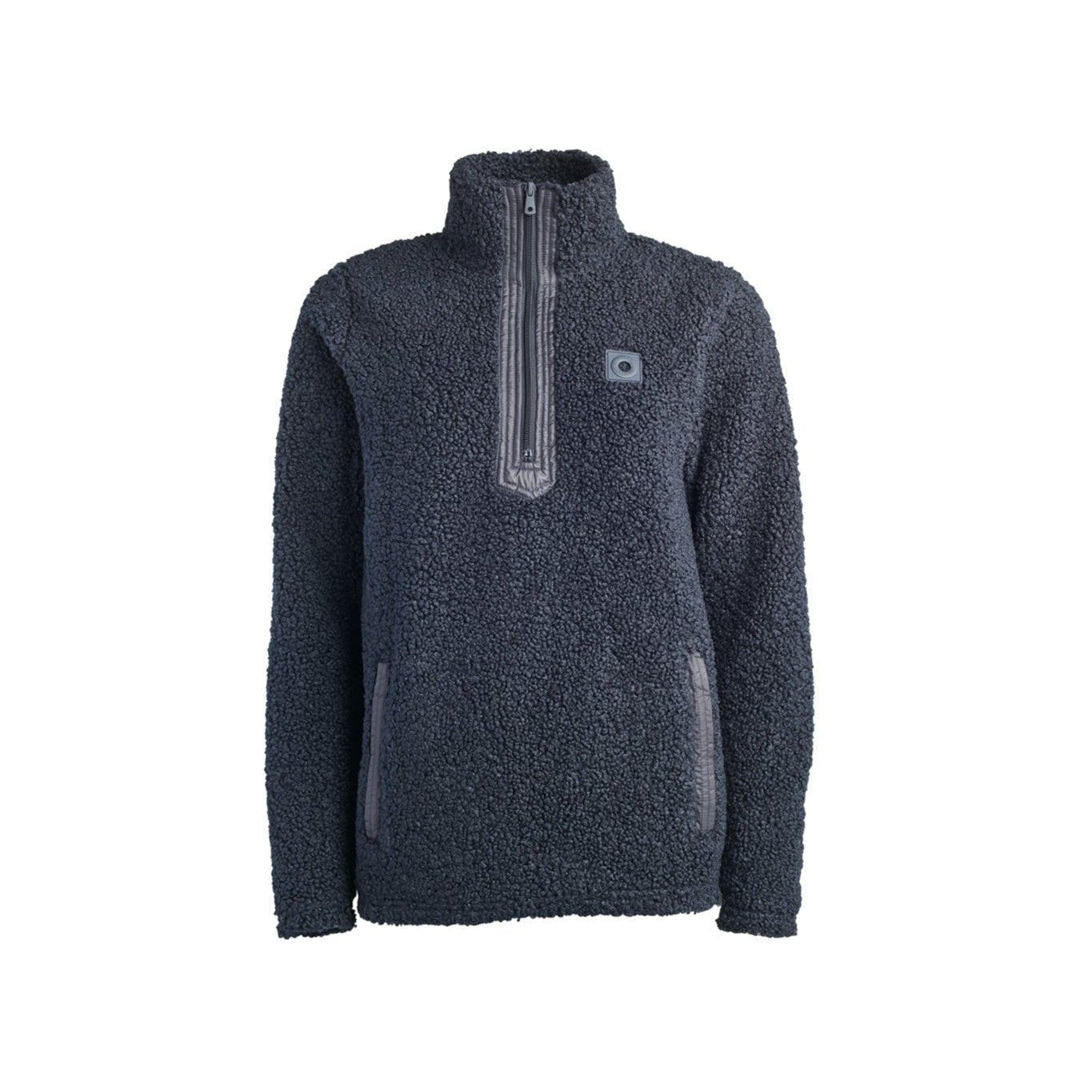Kuscheliger Shepherd-Pullover mit halbem Reißverschluss. Die Designmerkmale umfassen ein Silikon-Patch auf der Brust, einen Logo-Reißverschluss, und eine Stickerei links unten auf der Vorderseite.
