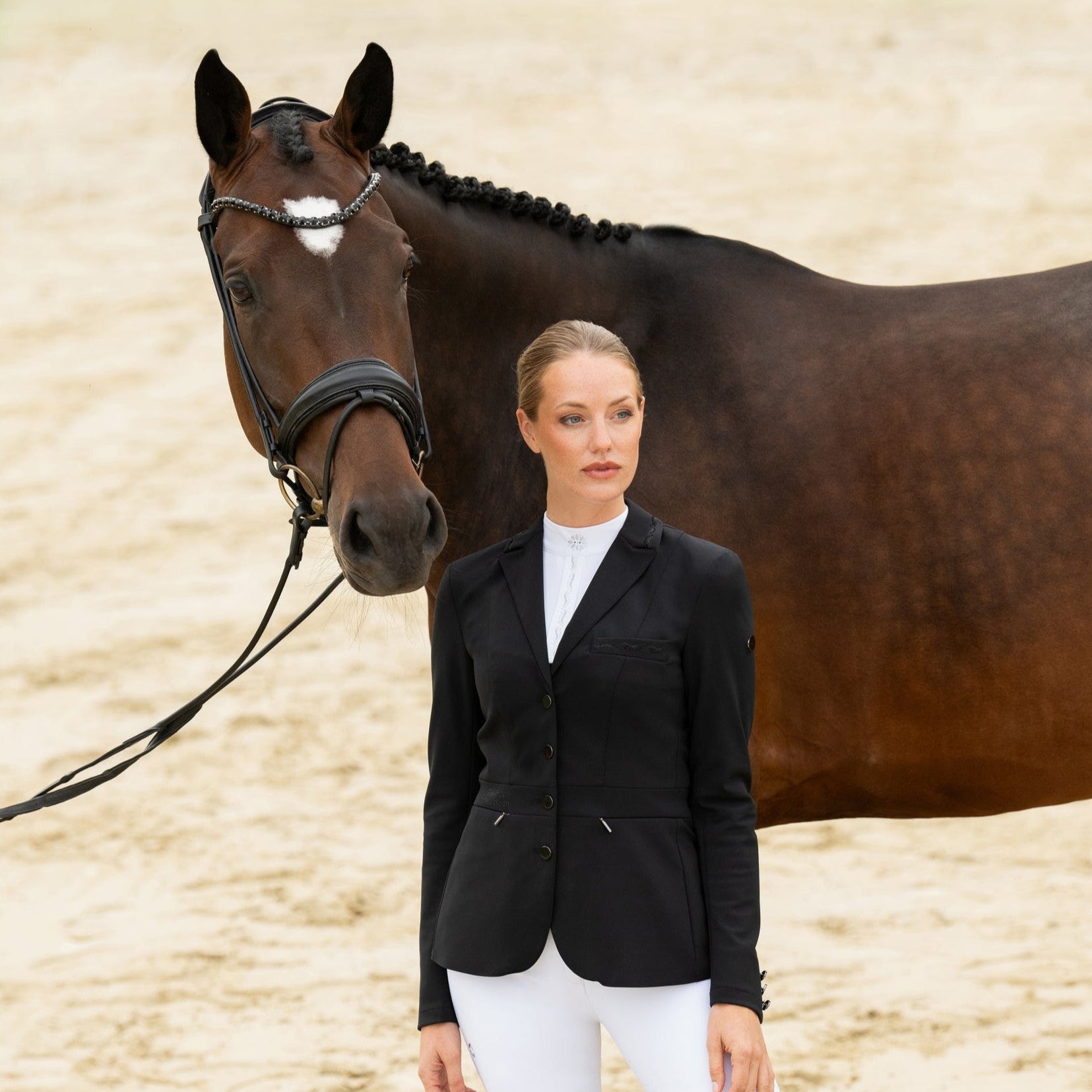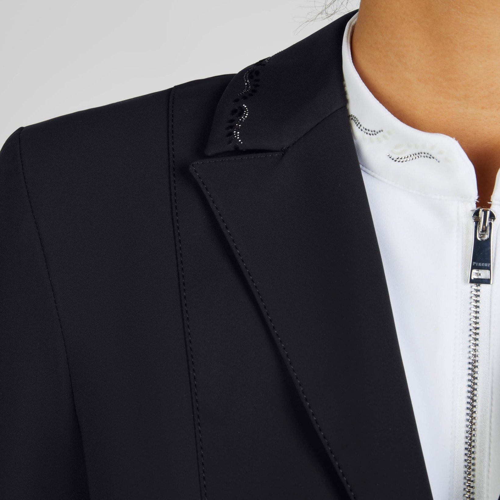 Das Turnierjacket PIKEUR PHELIA 2200 Selection vereint sportliche Eleganz mit höchstem technischen Anspruch. Die atmungsaktive Tech-Jersey-Funktionsware sorgt für angenehmen Tragekomfort, während das luftdurchlässige Mesh-Futter im Innenbereich ein optimales Körperklima gewährleistet.