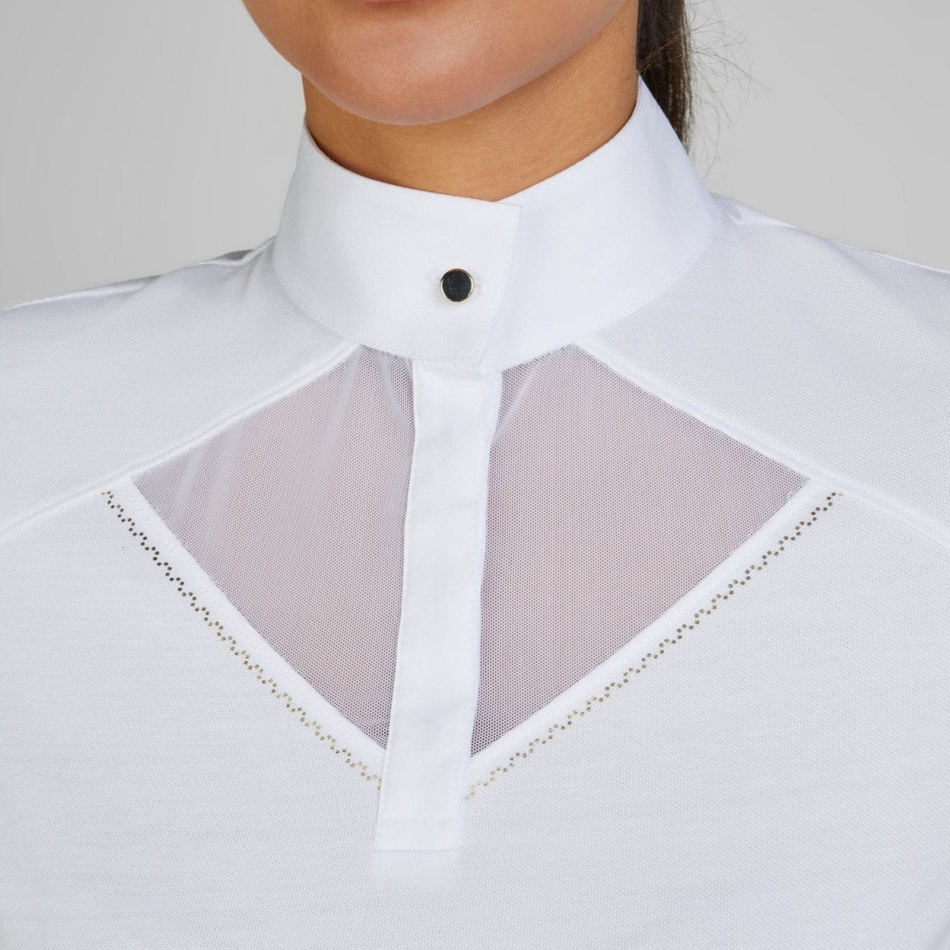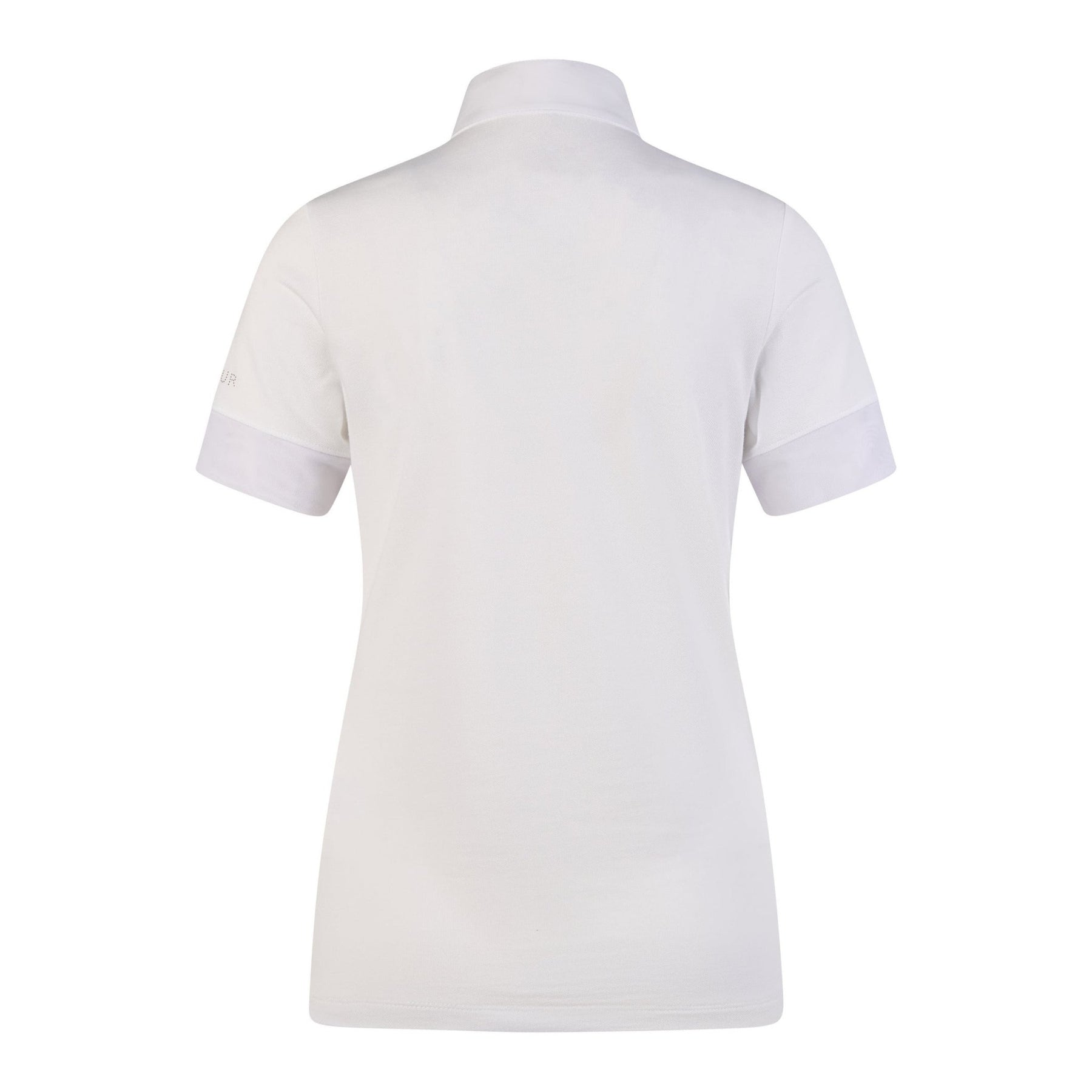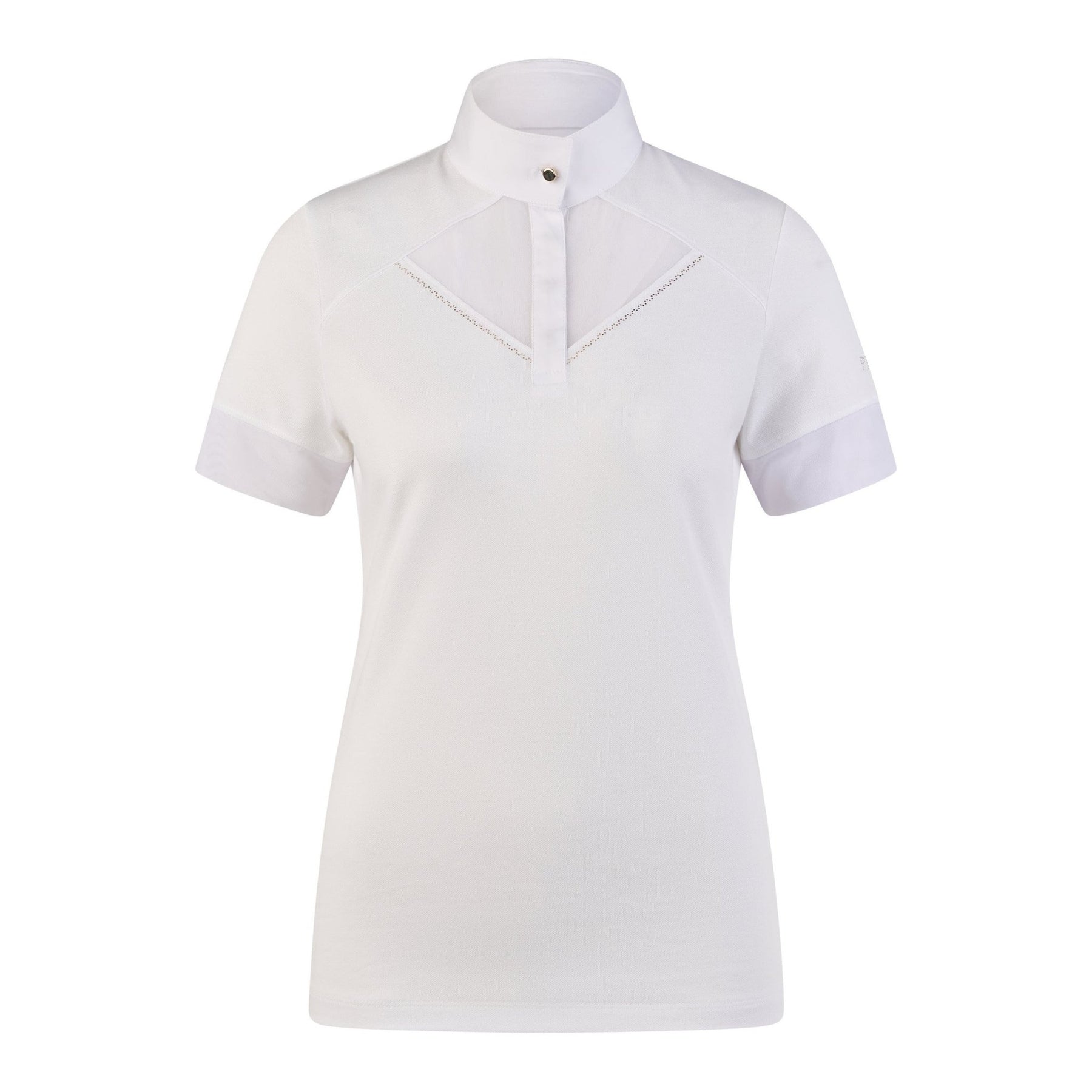 Vorne und an den Ärmelsäumen sind Tülleinsätze verarbeitet, die dem Shirt eine sportlich-moderne Optik verleihen. Die verdeckte Knopflochblende mit Schmuckknopf ergänzt das klare Design. Unterhalb des Tülls auf der Brust befindet sich eine feine Applikation, der linke Ärmel ist mit einem dezenten Pikeur Labeling versehen.