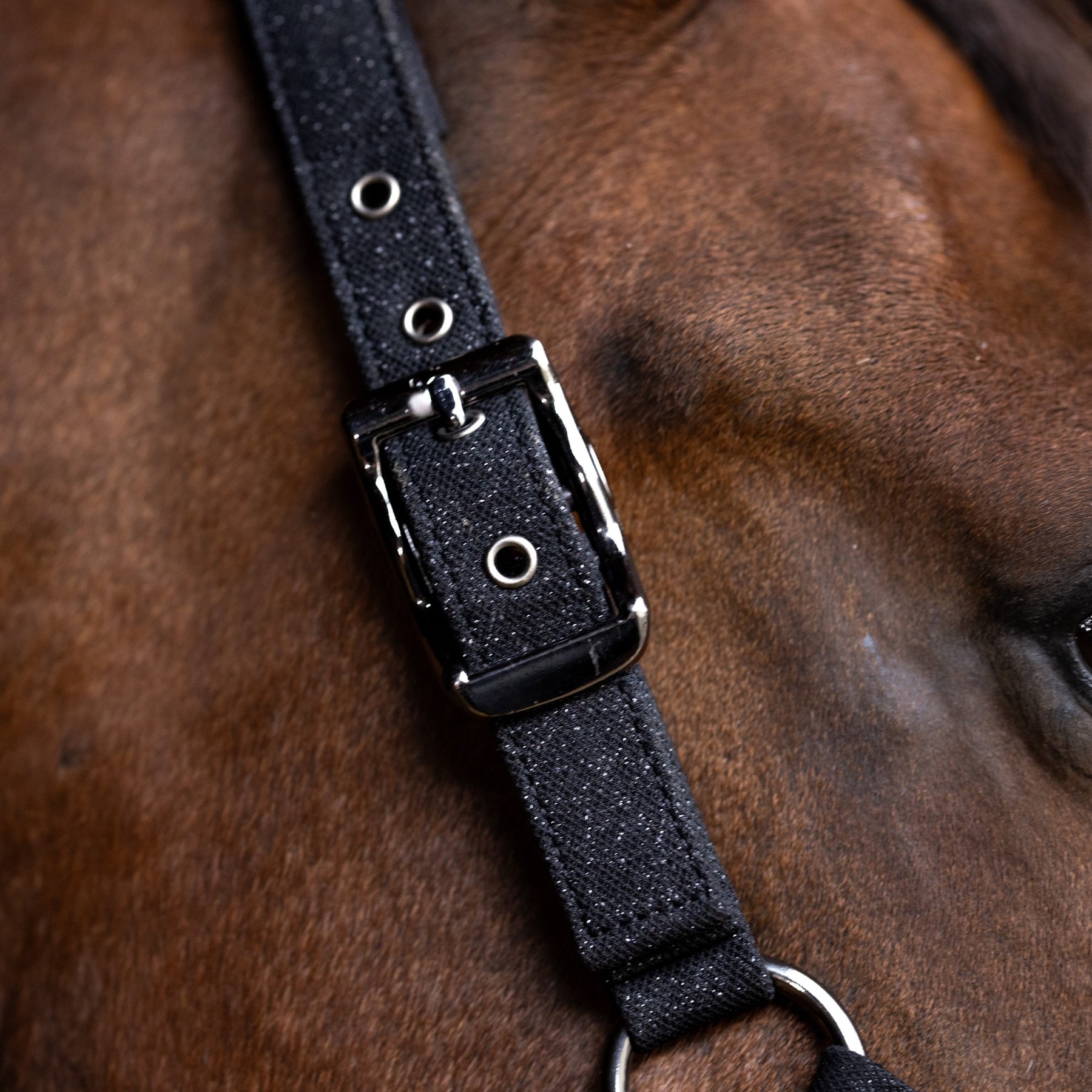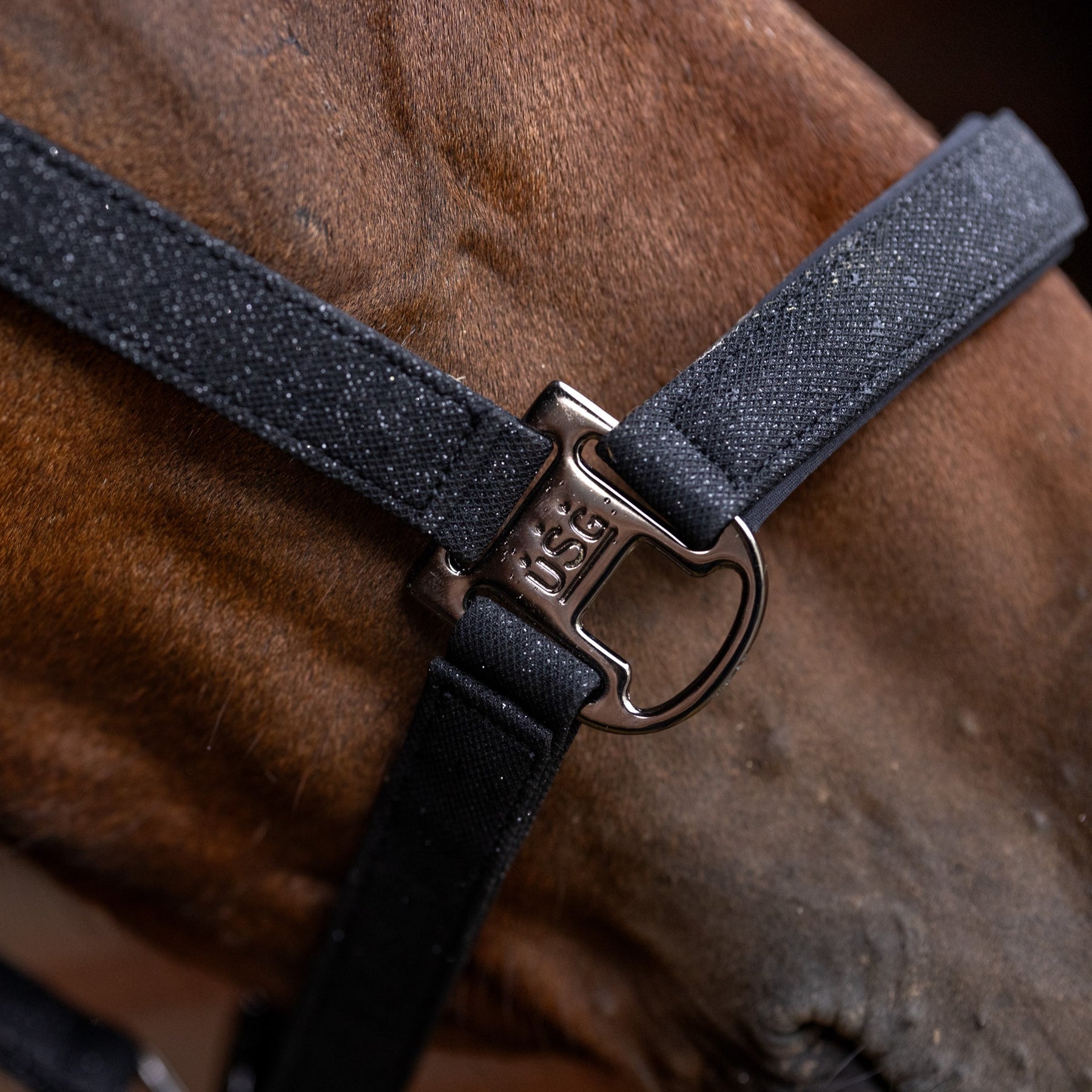 Das USG Glitzerhalfter ONYX kombiniert Funktionalität mit einem eleganten Glitzerlook. Das Halfter ist mehrfach verstellbar und ideal für den täglichen Einsatz sowie besondere Anlässe geeignet.