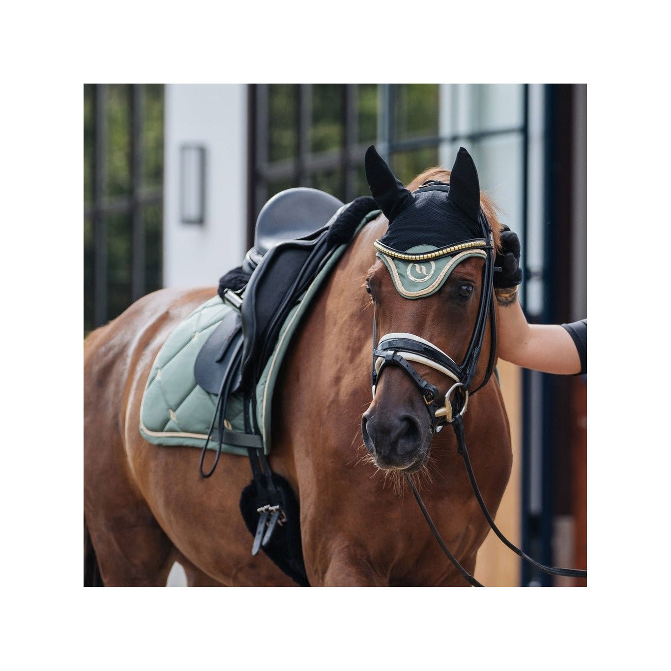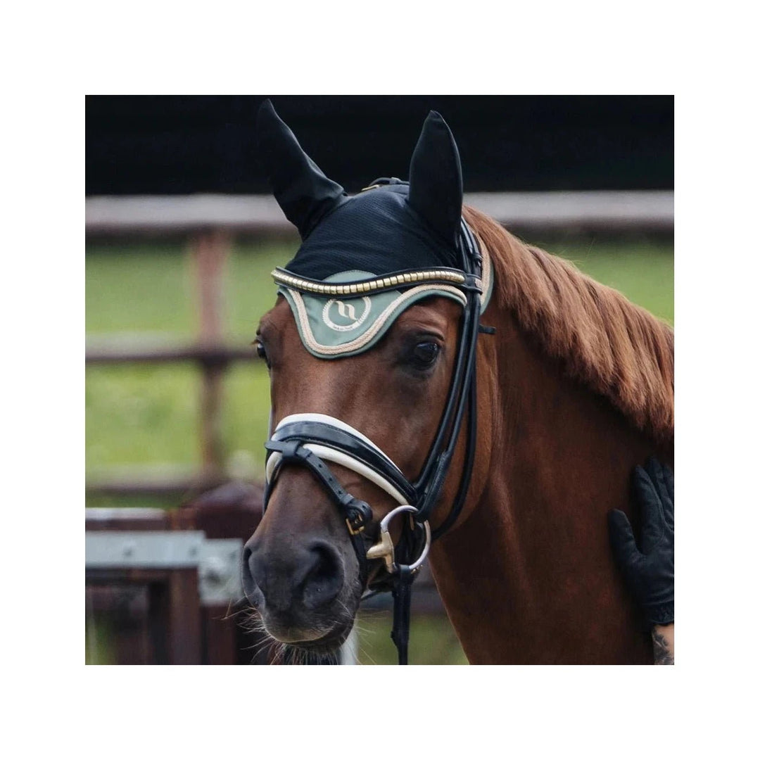 Nights Collection Fliegenohren mit Welltex®. Elegante, klassische Fliegenohren abgesetzt mit champagnerfarbenen Details. Die Fliegenhaube ist stark atmungsaktiv und verfügt über elastische Ohren für eine optimale